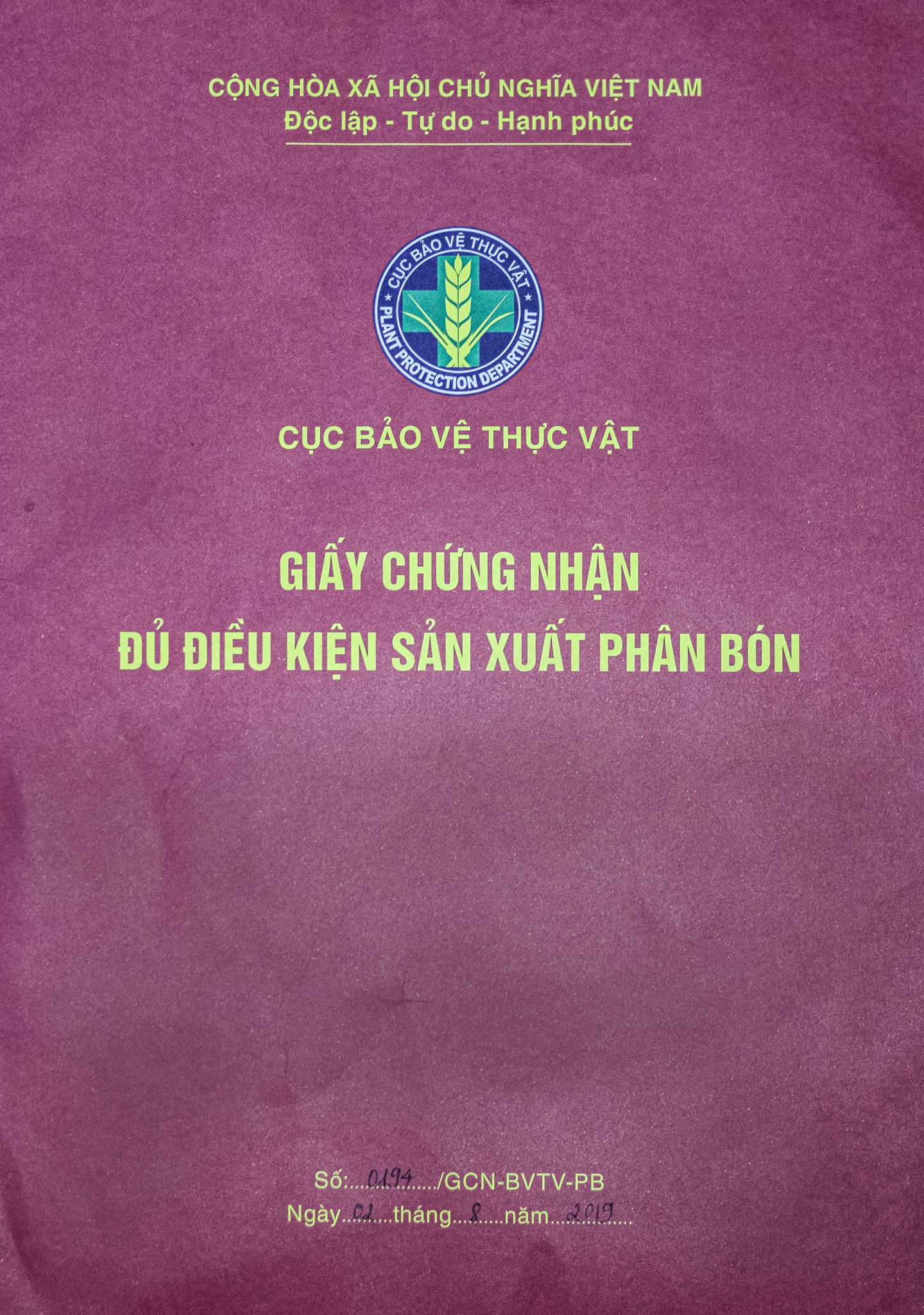 GIẤY CHỨNG NHẬN