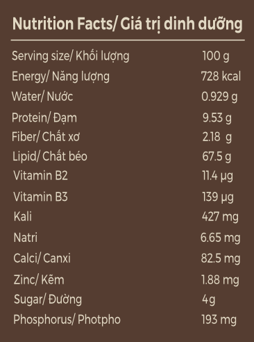 Mở miếng nắp thép của hũ sản phẩm. Có thể dùng nhân hạt mắc ca như một món ăn nhẹ bổ dưỡng.