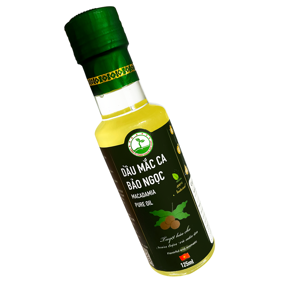 Dầu mắc ca là một loại dầu thực vật đặc biệt, chứa hàm lượng axit béo không bão hòa đơn cao, tốt cho tim mạch. Nó có chứa axit palmitoleic (Omega 7 – rất hiếm thấy ở các loại hạt), giúp hỗ trợ độ ẩm cho da và kháng viêm. Với chất chống oxy hóa mạnh và khả năng thẩm thấu nhanh, dầu mắc ca là lựa chọn lý tưởng trong chăm sóc da và tóc. Hương vị nhẹ nhàng, ngọt ngào cũng làm nó trở thành thành phần hoàn hảo cho món ăn và salad. Dầu mắc ca – sự kết hợp hoàn hảo giữa sức khỏe và hương vị! 🌿💚